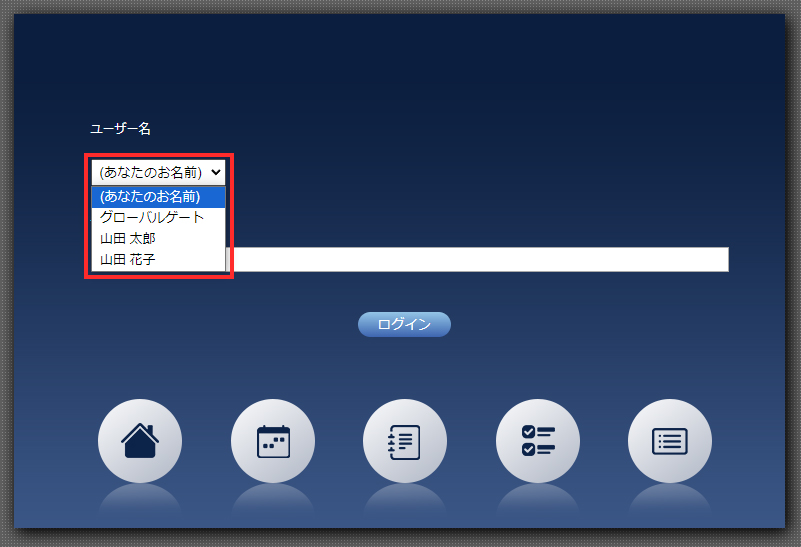 (2)アカウント名をプルダウンメニューから選択し、パスワードを入力する「アカウント名選択タイプ」