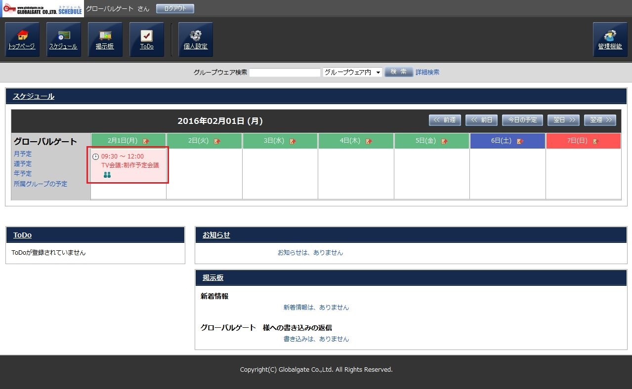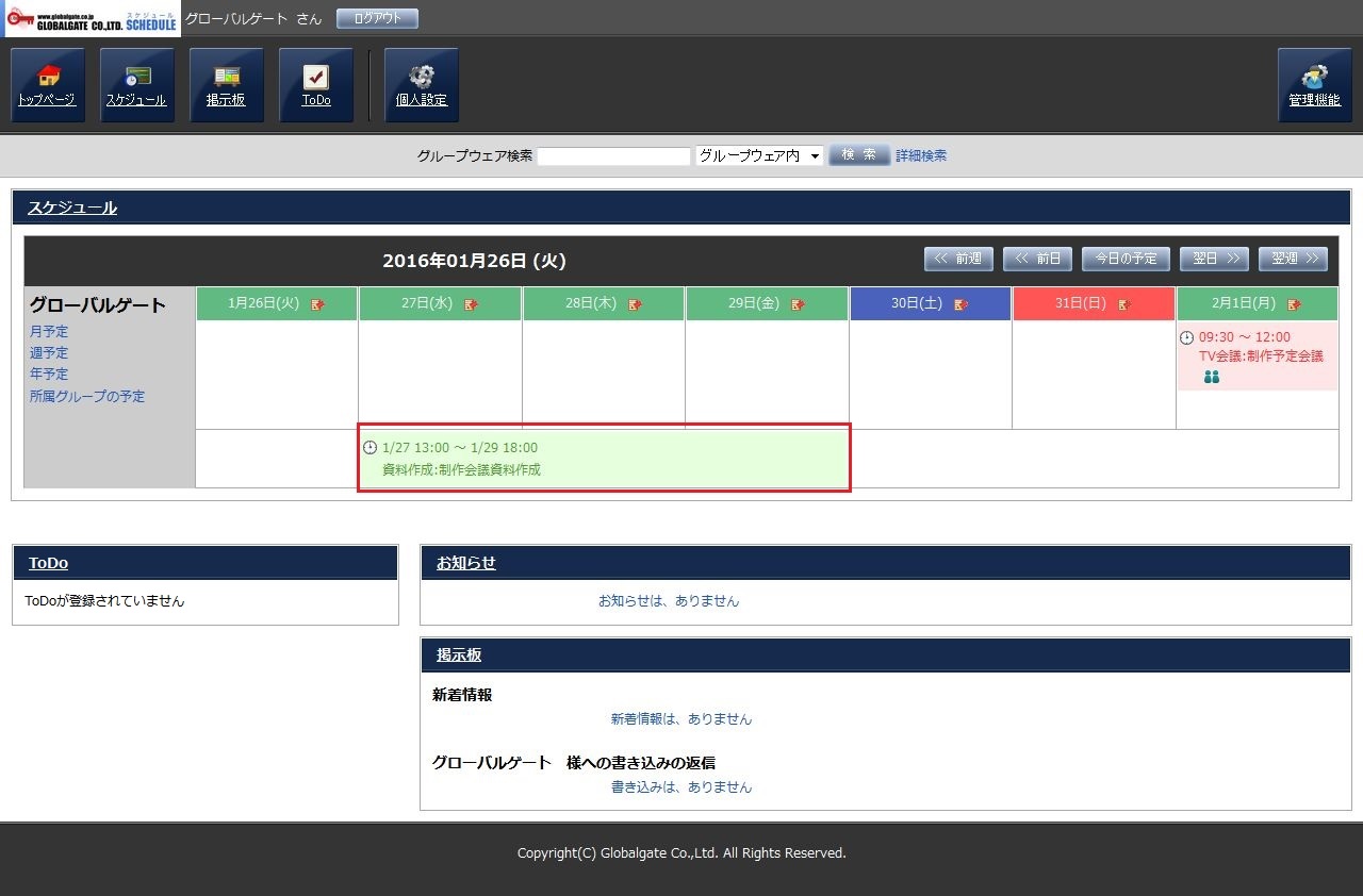 - スケジュールに表示され、他のユーザーも内容を見る事が可能です。